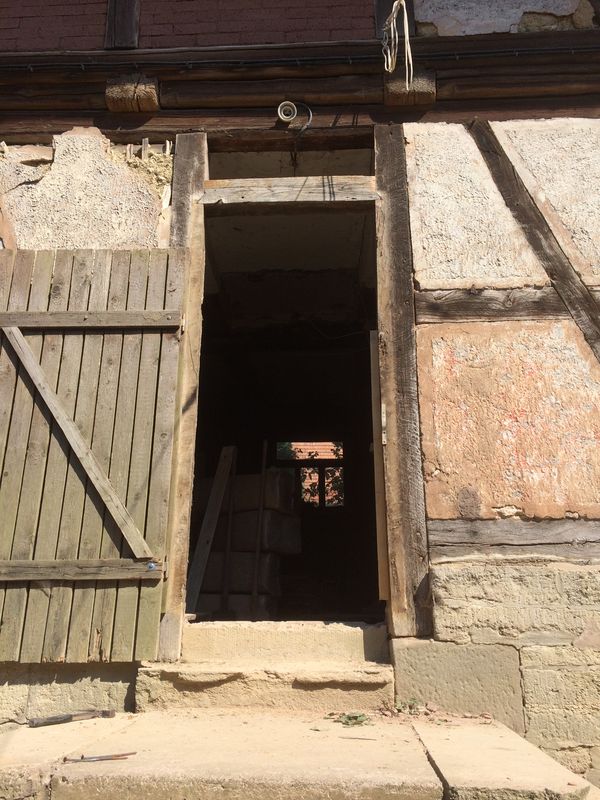 Dafür haben wir die Haustür rausgenommen und das alte Türfutter entfernt. Dabei natürlich die Türangeln und Beschläge aufgehoben...