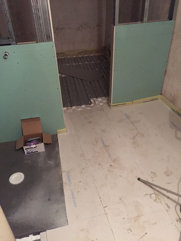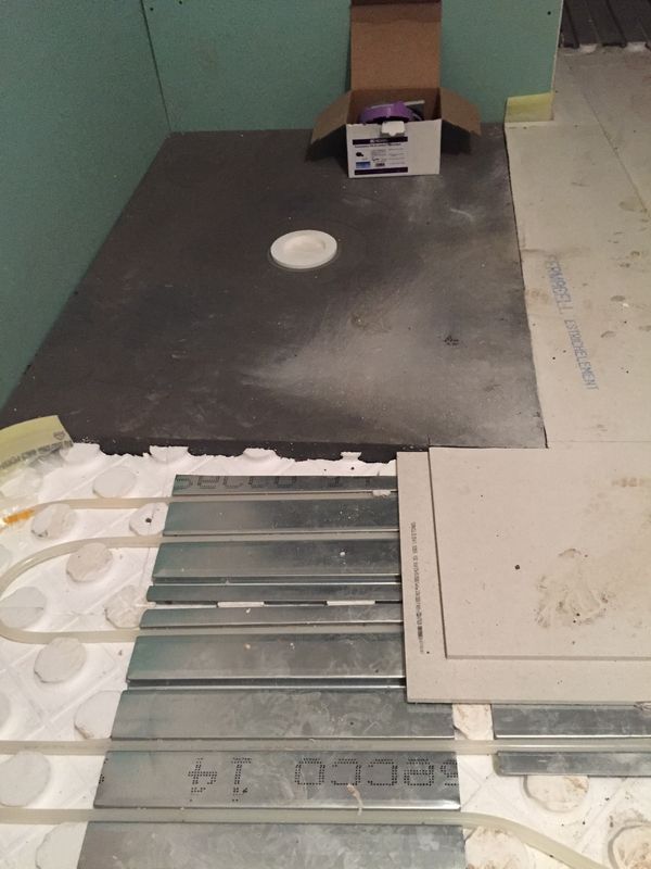Darauf dann die Heizschleifen und die Estrichplatten: