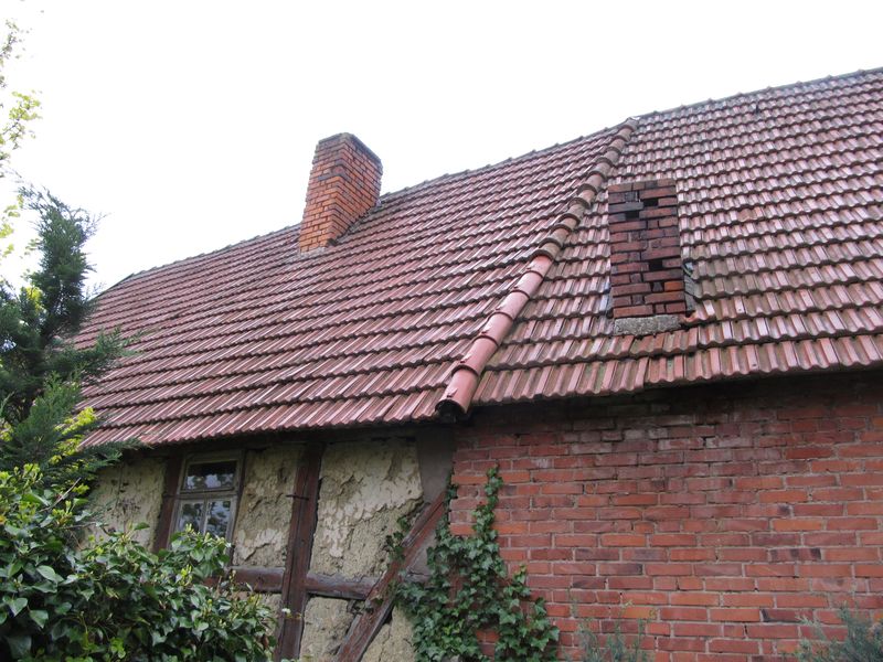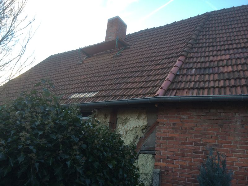 Unser zuständiger Bezirksschorsteinfeger war zur Begutachtung unserer Schornsteine da. Köpfe neu machen war jetzt angesagt, sonst alles soweit okay. Da ich gerne im Winter einen Ofen für die Innenarbeiten anfeuern wollte, musste nun noch eben schnell ein Kopf neu.