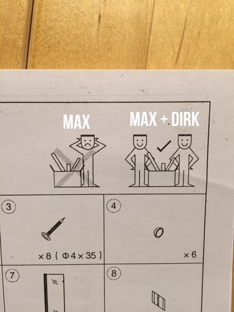Und plötzlich - war das Modell wieder für meinen geplanten Preis verfügbar! Schnell zugeschlagen und dann war die Lieferung da. Die Anleitung hat gesagt, dass das nicht alleine geht, deshalb habe ich unseren Freund Dirk mit folgendem Bild gebeten, uns zu helfen: