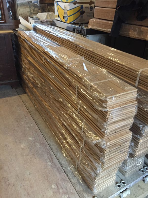 Die Dielen waren auch dabei - Eiche! Insgesamt das ganze Paket mit Holzfaserplatten, Tonplatten, Rohr, Dielen und Fußleisten...