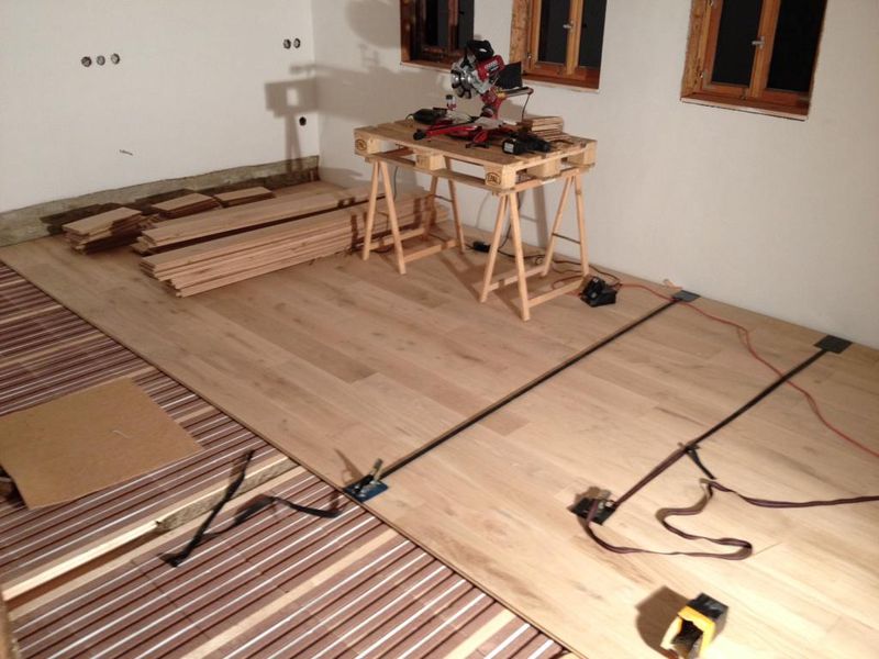 Da man auch nicht immer alles selber machen kann, haben wir uns dazu entschieden, die FBH und die darauf kommenden Dielen verlegen zu lassen. Mithilfe unsererseits natürlich auch!