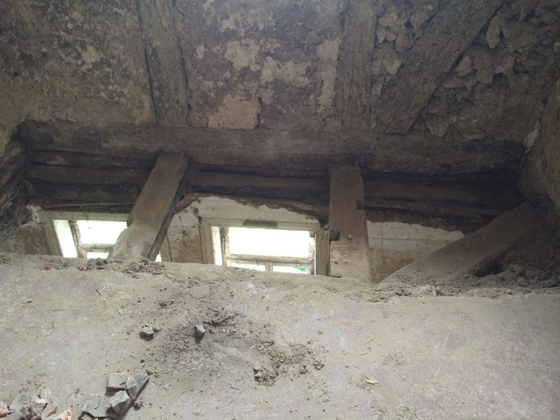 Dort waren dann tatsächlich wieder Lehmwickel eingebaut. Auf dem rechten Stichbalken kann man die beiden Einlässe sehen, durch die die Lehmwickel in die eingefräste Nut des Balkens gefädelt wurden.