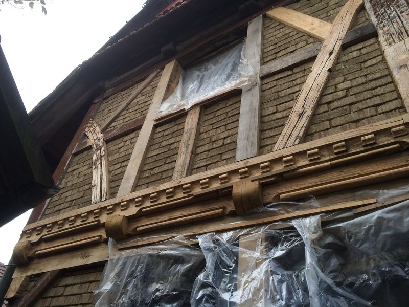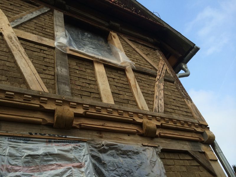 Wenn man vom Hof an der Fassade hochschaut, dann kann man sich nun gut vorstellen, wie es einmal aussehen wird.