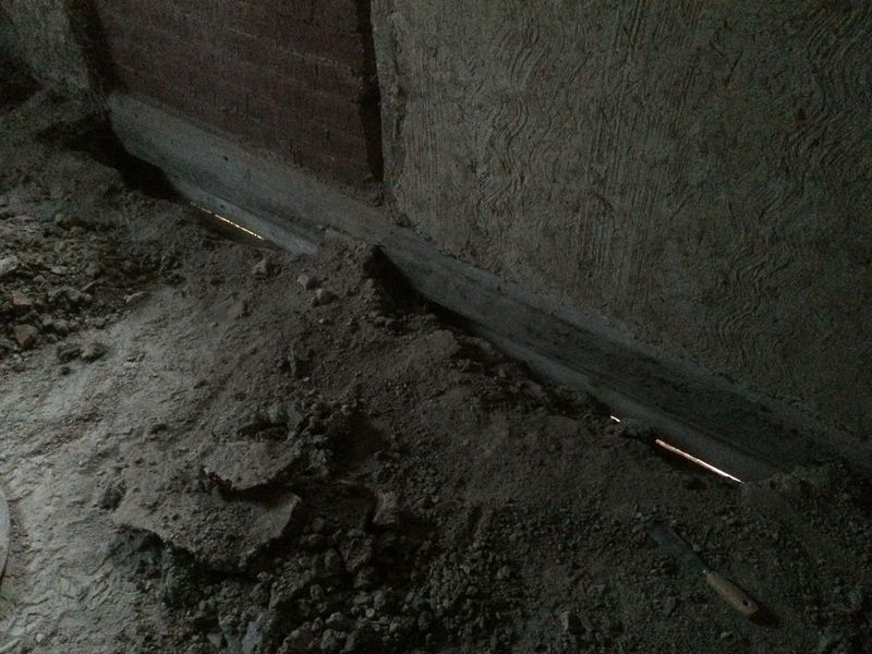 Nachdem die neuen Füllhölzer (mit Kerzen-Schnitzereien) drin waren, ist uns entlang der Wand die Lehmschüttung etwas weggebrochen. Klar, die eingemauerten Tuffsteine waren ja nicht mehr da, um Halt zu bieten... Da ich eh vor hatte, hintern den Hölzern nach dem Rechten zu schauen, hab ich das Ganze geöffnet. Und siehe da- es schimmert durch. Ein Angriffspunkt für potentielle Nest/Höhlen-bauer, den es abzudichten gilt.
