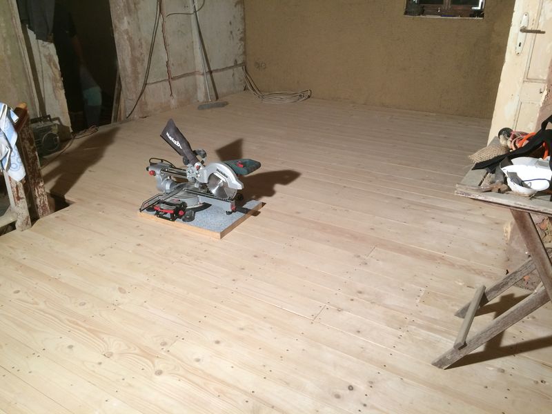 Trotz toller Säge ist es doch besser, wenn man nicht ganz allein bei so einer Aktion steht. Meine Eltern haben mir ganz toll dabei geholfen. Als dann jeder so seine Aufgabe und seinen Platz gefunden hatte, ging es rasend schnell voran. Nun kann man in dem großen Flur vernünftig laufen und natürlich auch tanzen...